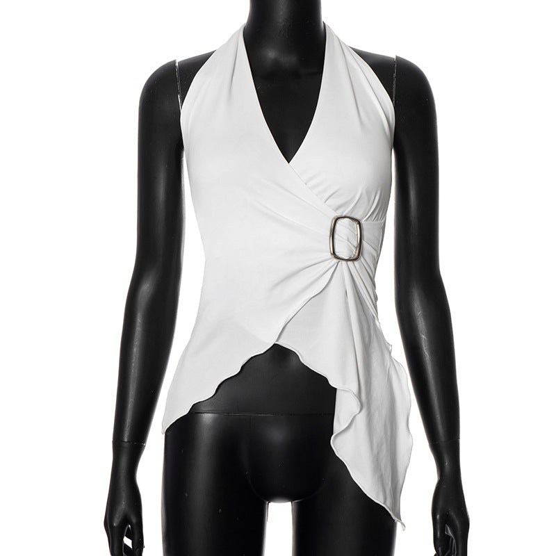 2000s fashion Y24tp297 Women's Summer New Solid Color Sleeveless V-neck Sexy Halter Cross Top for Women