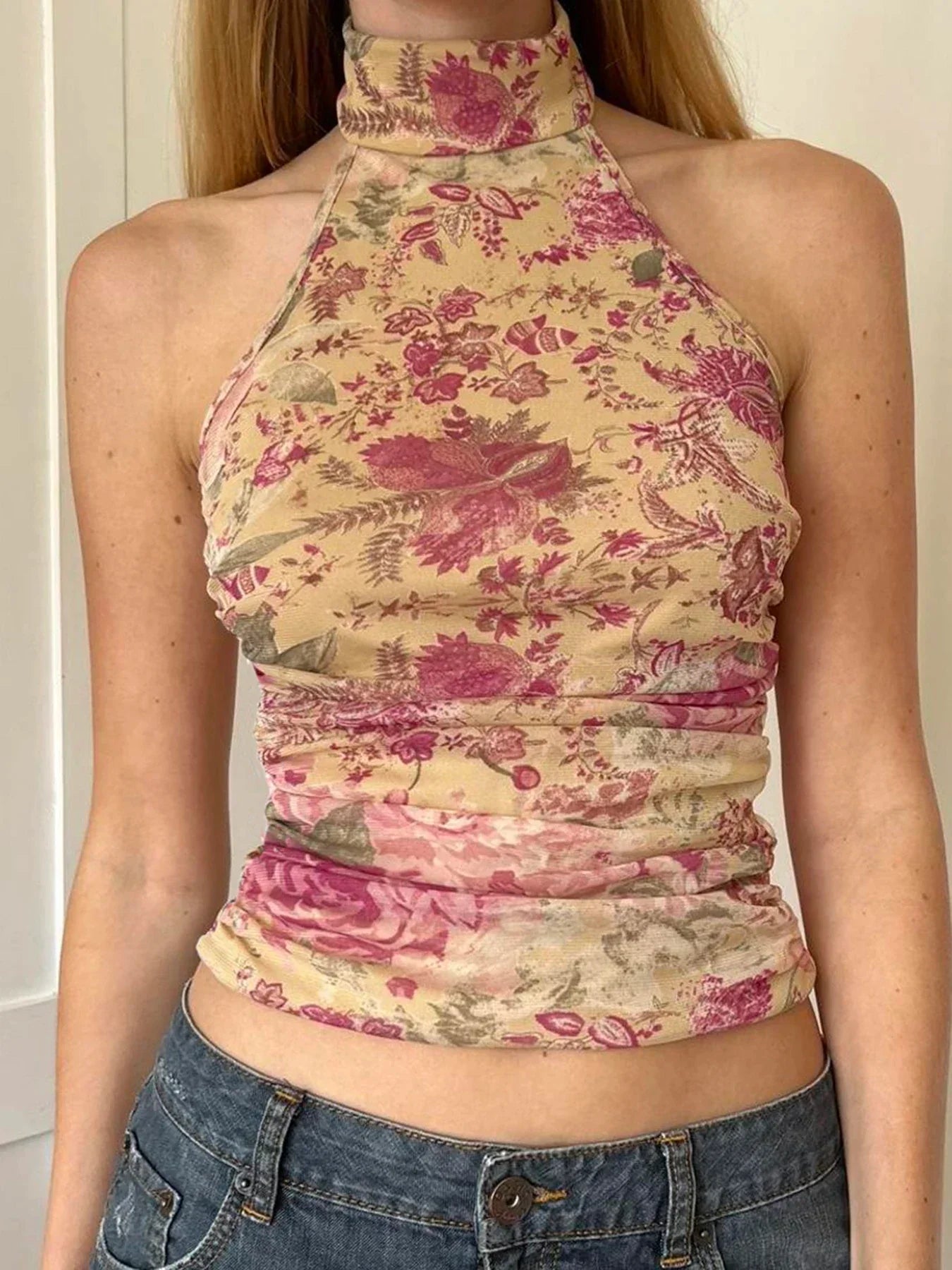 Pydshop Boho Floral Print Turtleneck Halter Top
