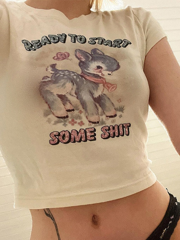 Description: Ready to start your spring & summer with these such cute tops. With a tighten silhouette. features a cropped length. and has a design of animal & letter pattern print on it.