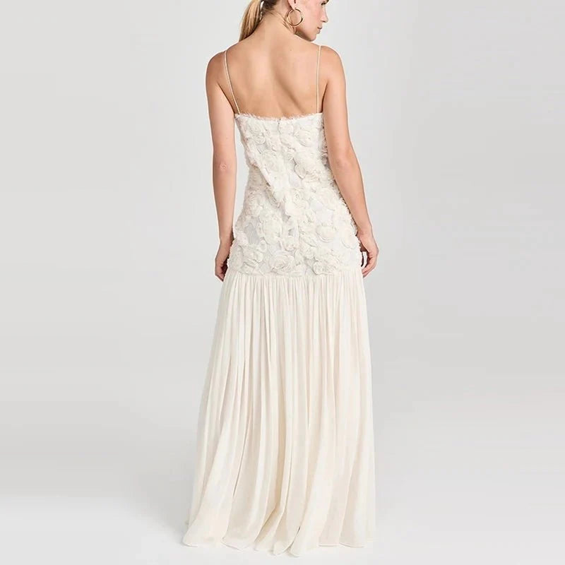 Design: A stunning floor-length dress adorned with intricate 3D flower decorations. Featuring a elegant neckline and a sleek. straight silhouette. this dress blends elegance with a bold leopard print. perfect for making a statement at any event.