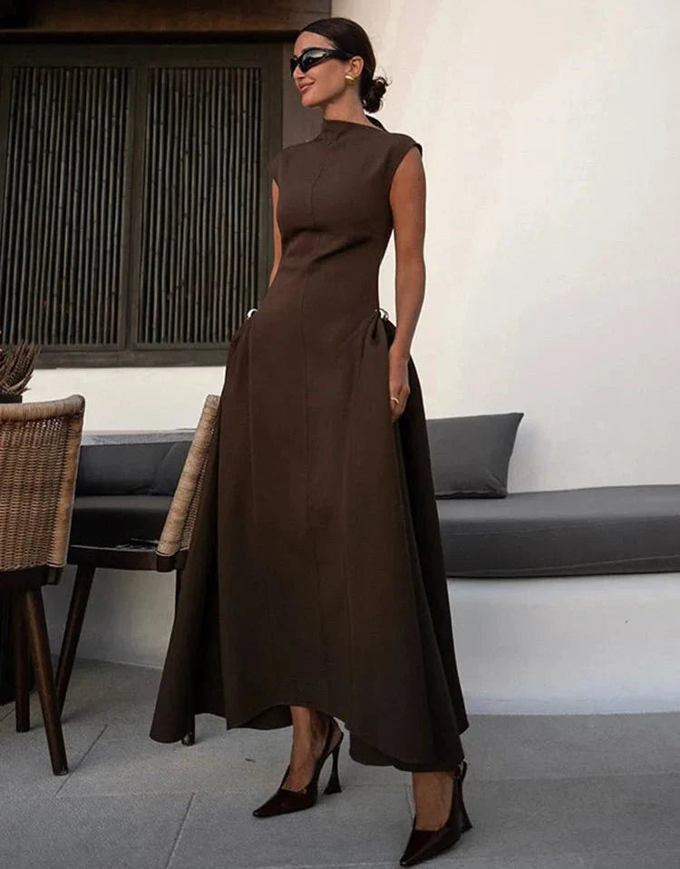 Design: Floor-length evening dress with a scarf collar and straight silhouette. offering a luxurious and elegant look.