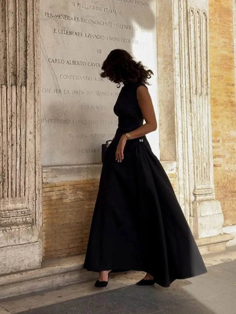 This ankle-length A-line dress is a statement of sophistication and style. Key features include: