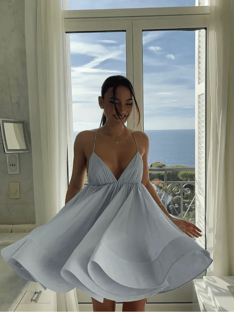 Design: A stylish pleated A-line mini dress featuring a flattering V-neckline. sleeveless design. and off-shoulder style. The solid yellow color adds a vibrant touch. while the pleated hem enhances the feminine silhouette.