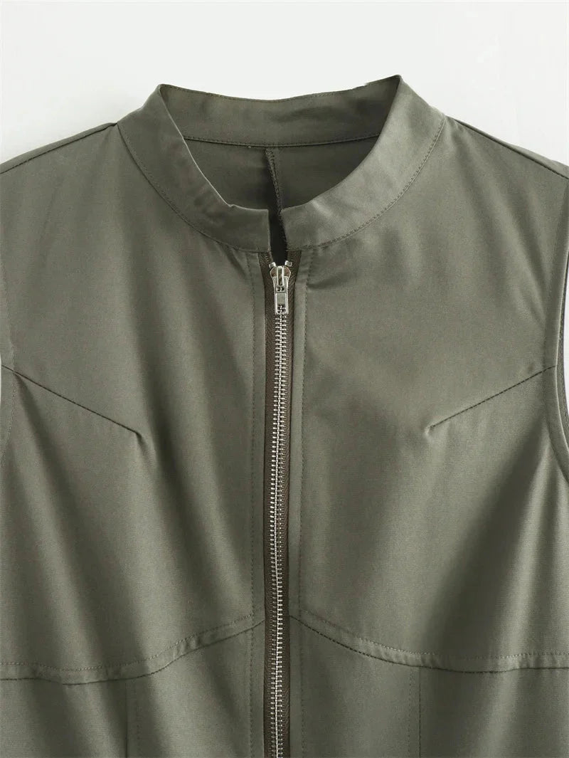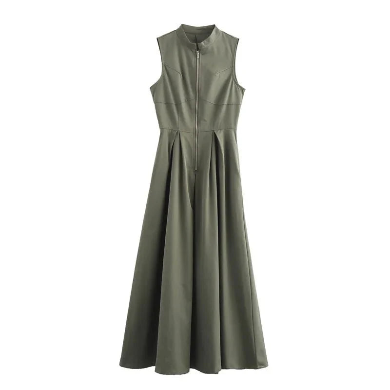 Design: A sleek A-line dress with pleated details. a natural waistline. and a mid-calf length for a sophisticated. feminine silhouette.