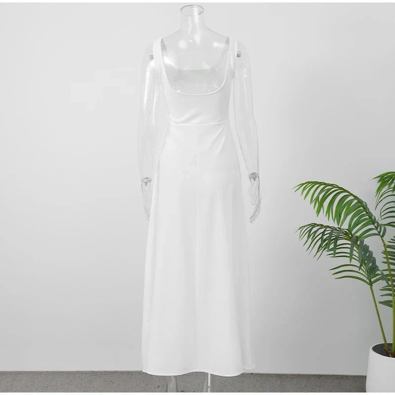 Design: Sophisticated A-line silhouette with a pleated design. square neckline. and sleeveless cut for a timeless look.