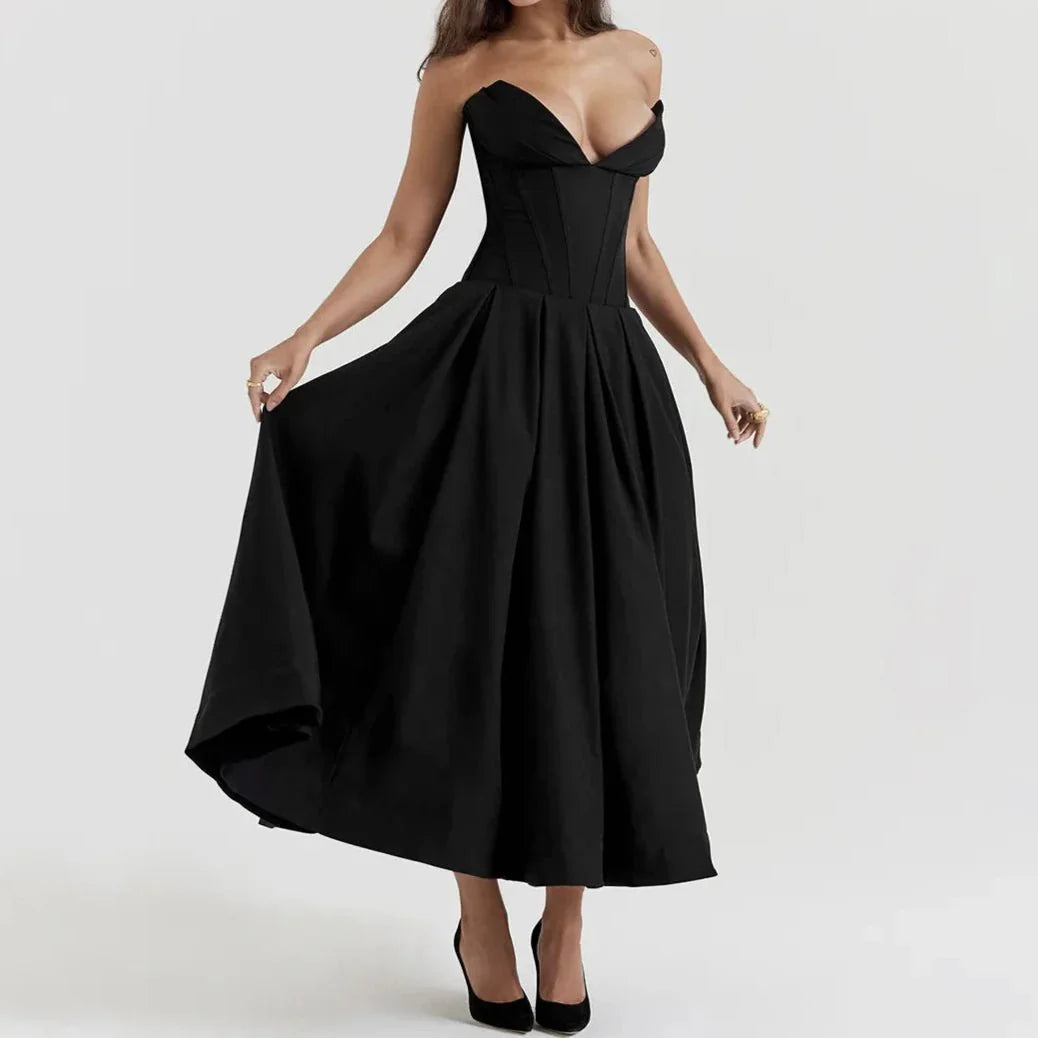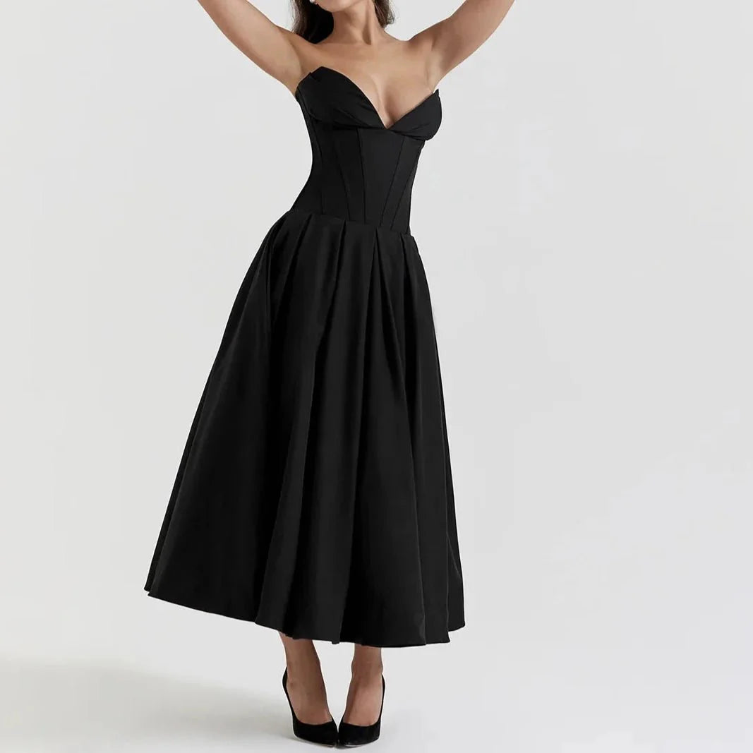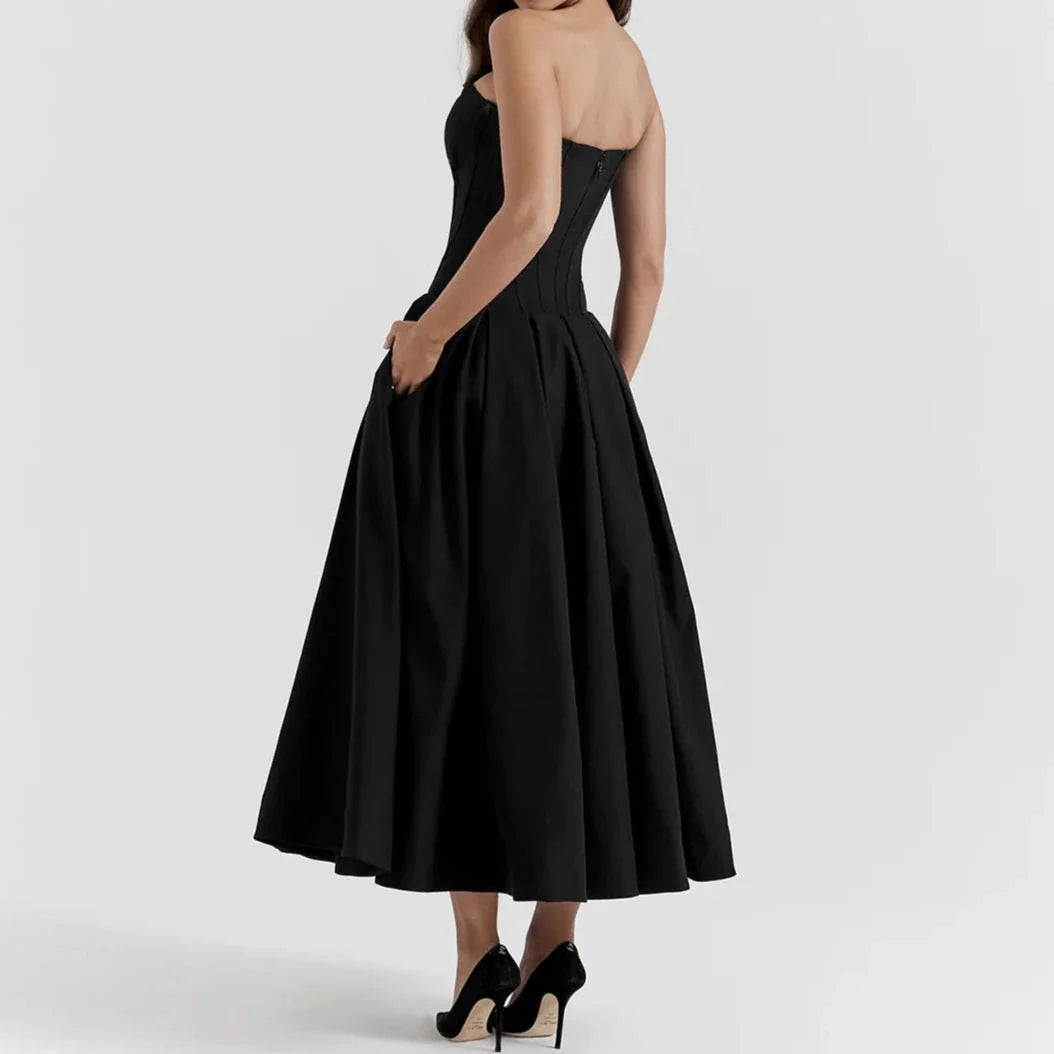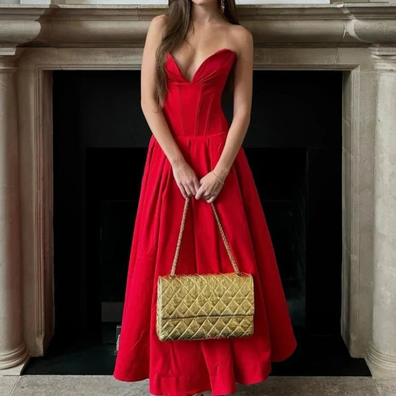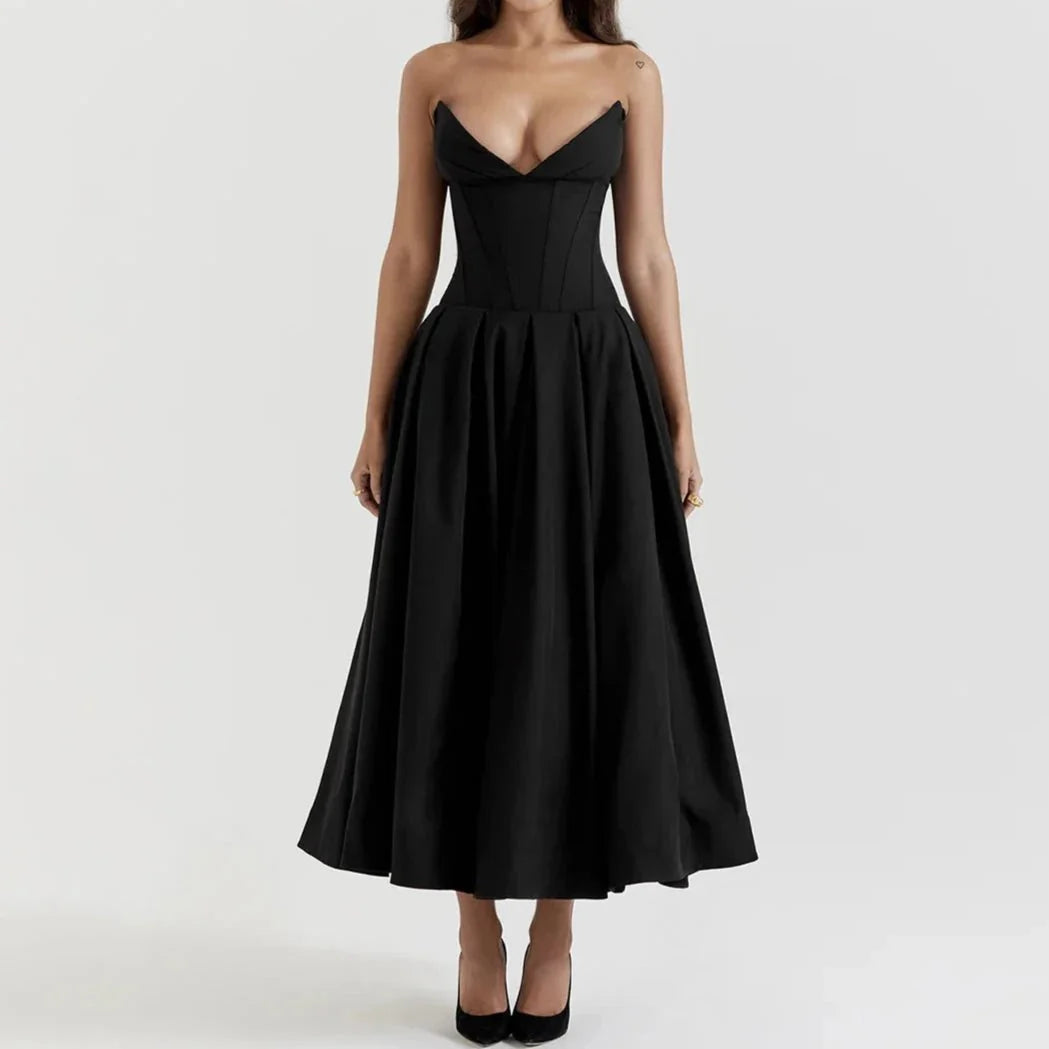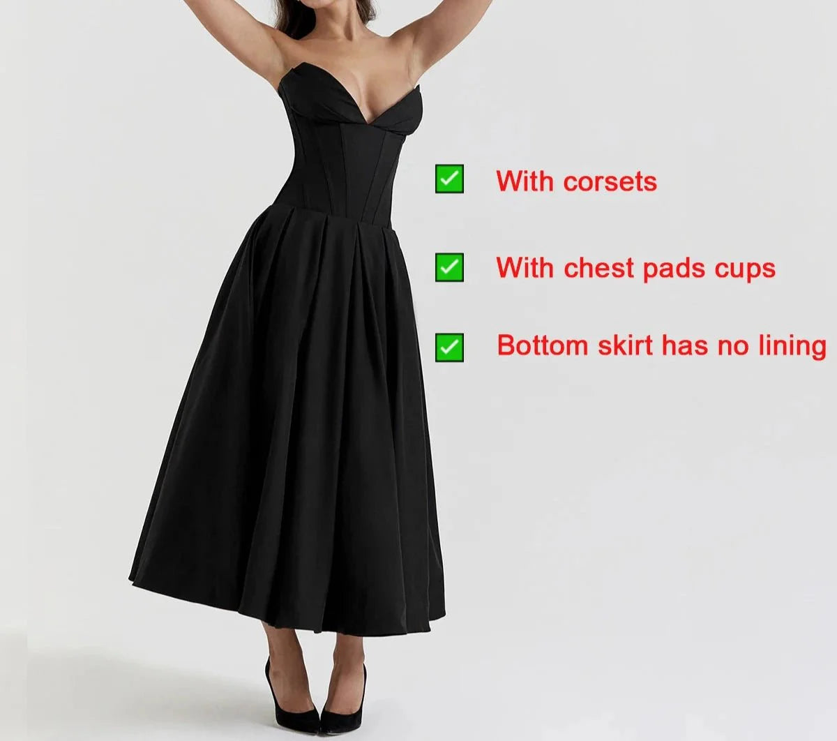 Make a statement with the Elegant Summer Strapless Dress. a perfect blend of sophistication and style for any formal occasion. Crafted from high-quality polyester with slight stretch. this dress offers a comfortable slim fit that enhances your figure. The strapless neckline and fit-and-flare silhouette create a timeless and flattering look. while the mid-calf length adds a touch of elegance. Designed in a solid color. this dress features a sleek zipper detail for easy wear. Suitable for all seasons. this sleeveless dress is a versatile addition to any wardrobe. perfect for making an impression at any formal event.