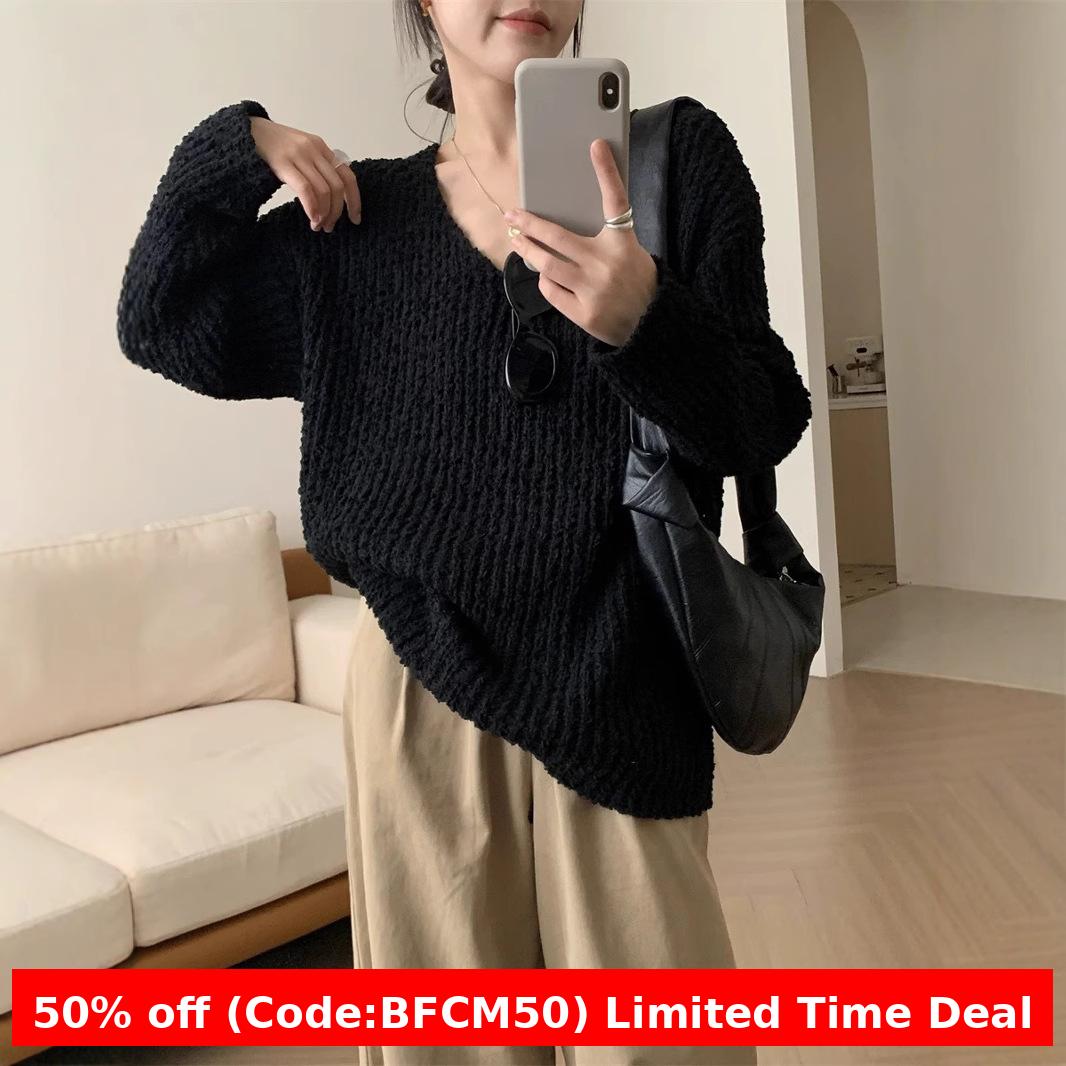 fall outfits 2024 Korean Style Lazy Style Loose V-neck Sweater Top Women's Autumn and Winter Casual Sweater Women's