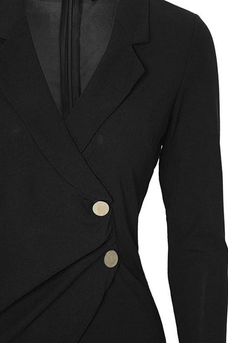 Elegant Solid Patchwork Buckle Turn-back Collar Wrapped Skirt Dresses(4 Colors)
