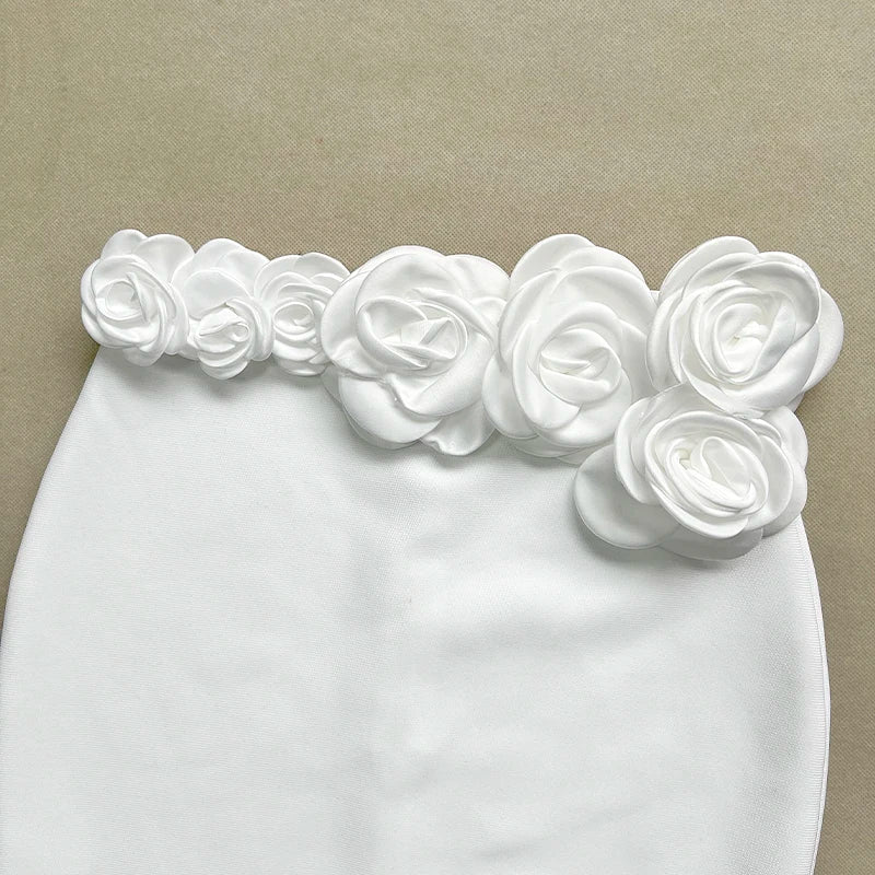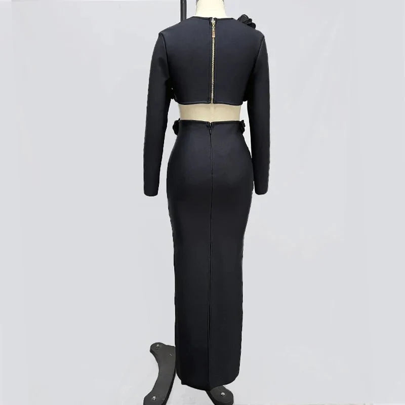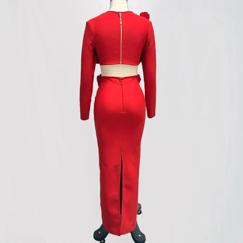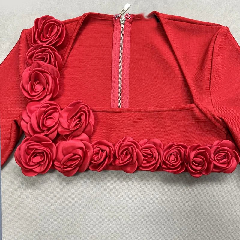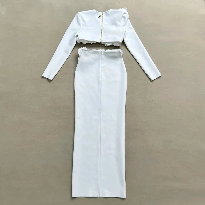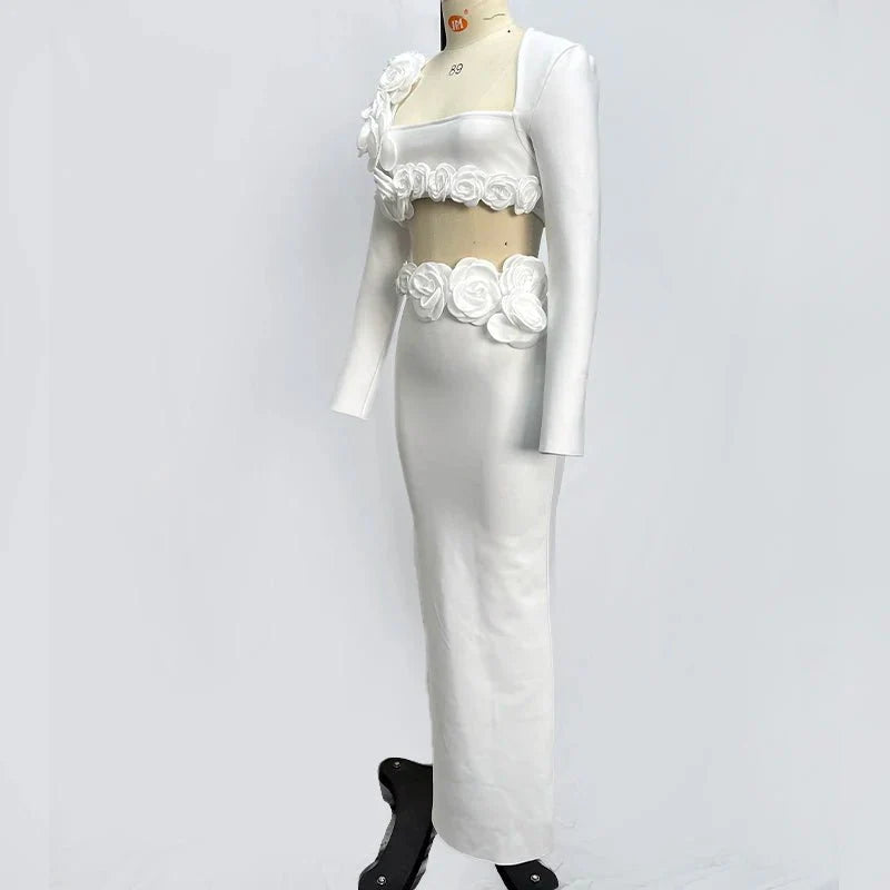 This elegant flower design set features a top jacket and mid-calf skirt with a sheath silhouette. Made from polyester with a knitted fabric. it has a square collar and full sleeves. The set is adorned with appliques for a stylish touch and secured with a zipper closure. perfect for formal or semi-casual occasions.