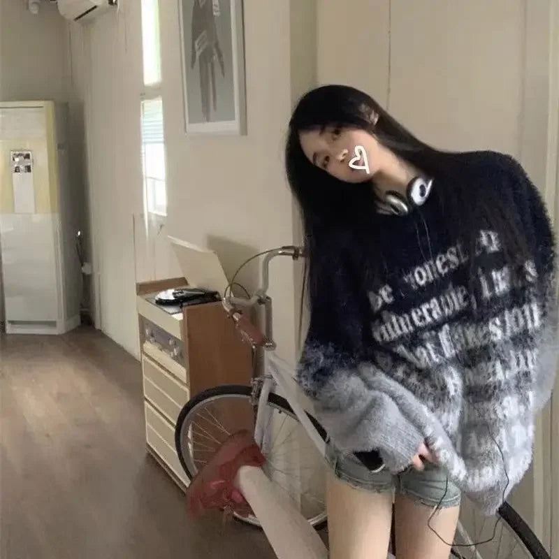IFOMT - Gradient Sueter Mujer Women Autumn Letter Long Sleeve Top Oversized Sweater Women Jumper Casual Outfit Korean Y2k Clothes