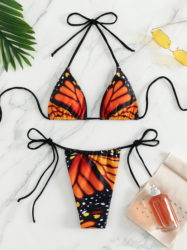 Description: Butterflies can be everywhere! You'll love this micro bikini set. It has an adjustable halter tie bikini top with padded cups. matching with a thong brief with tie-up waist design.
