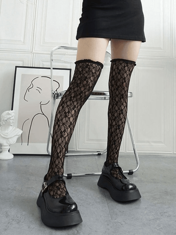 Design: Elasticated Cuffs. Lace Jacquard Detail