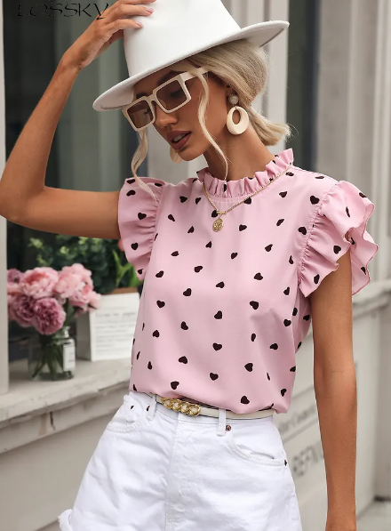A delicate and elegant addition to your wardrobe crafted from lightweight chiffon fabric. This charming top features a flowing silhouette. feminine details. and airy fabric. making it perfect for adding a touch of romance to any outfit.