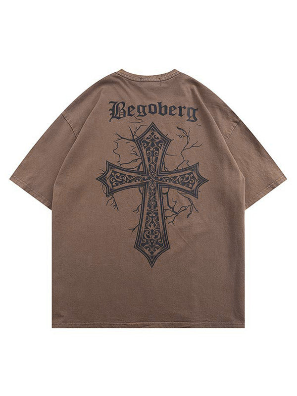Description: This acid wash tee made from pure cotton fabric. shaped to a relax fit. with logo pattern featuring at front & cross printed at back.