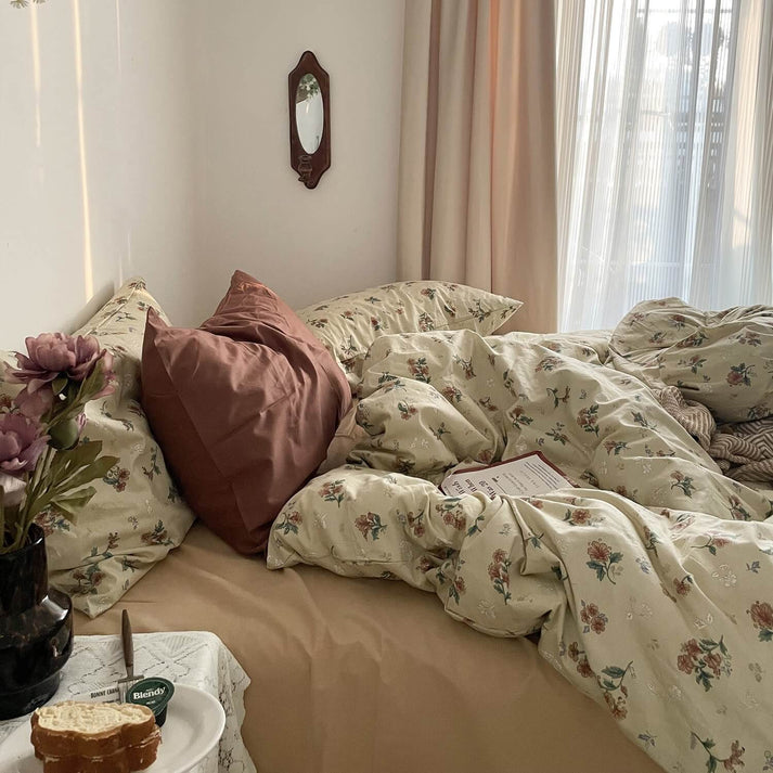 The Old Fashioned Floral Bedding Set transforms a bedroom into an old-fashioned grandmacore cottage house with its vintage floral print and comforting brown shades.
