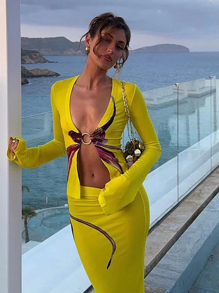 Pydshop Printed Midi Skirt Set O-Ring Top