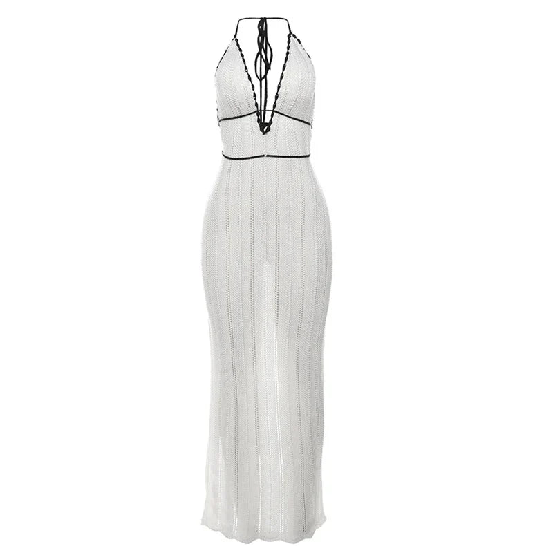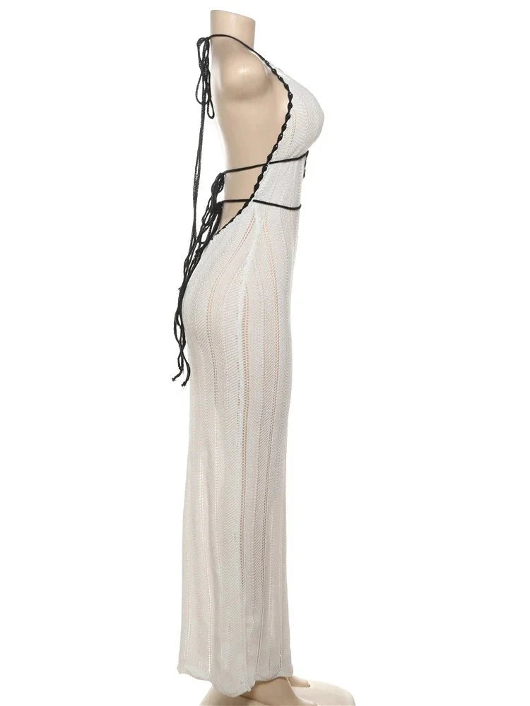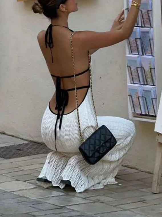 Design: Daring backless design with lace-up detail and a flattering halter neckline. featuring a bold color-block pattern for a modern and sensual silhouette.