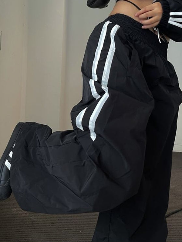 Description: These on trend retro. sporty-vibe sweat pants shaped to an adjustable waist. features contrast striped panels on the side. and has functional pockets design.