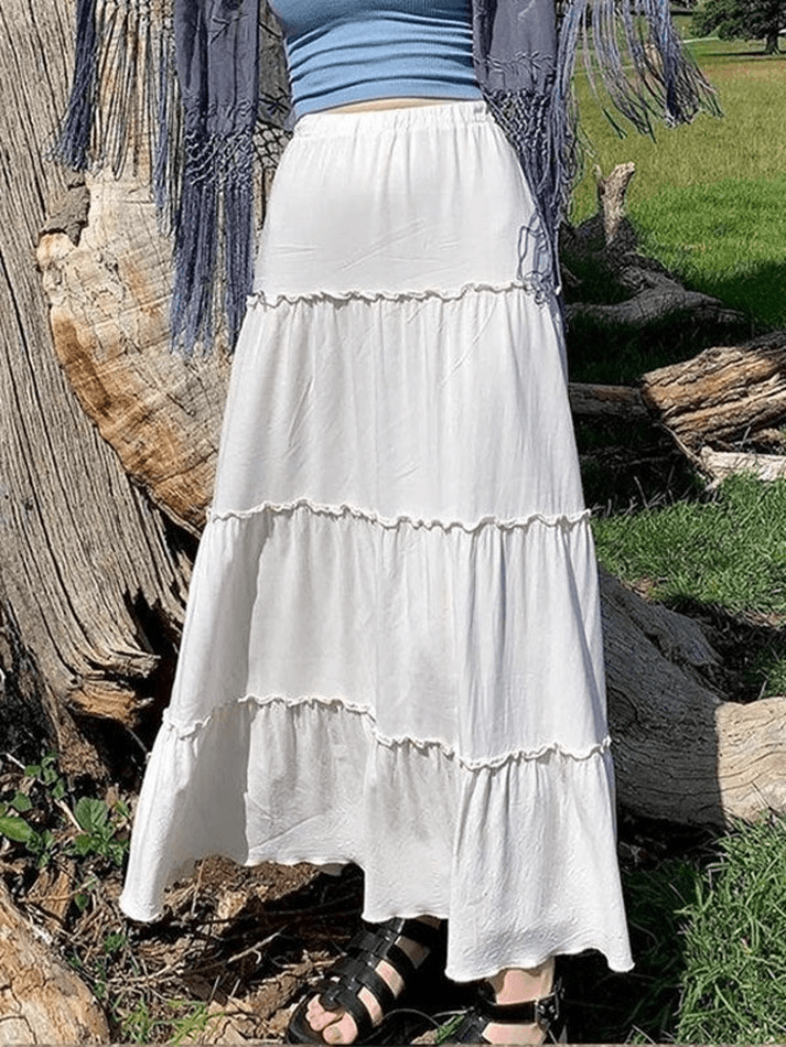 Decrease quantity for Solid Color Tiered Midi Skirt