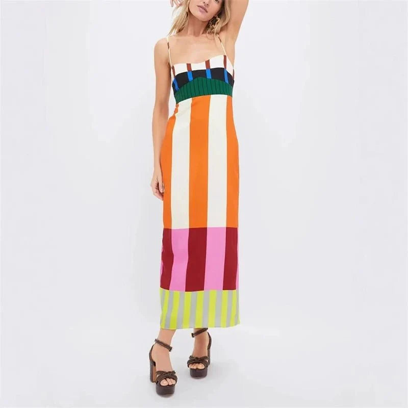 Design: A breezy floor-length dress featuring subtle stripes. a flattering A-line silhouette. and a side slit for added movement and charm. Designed with a casual neckline and regular sleeves. this dress blends ease with elegance.