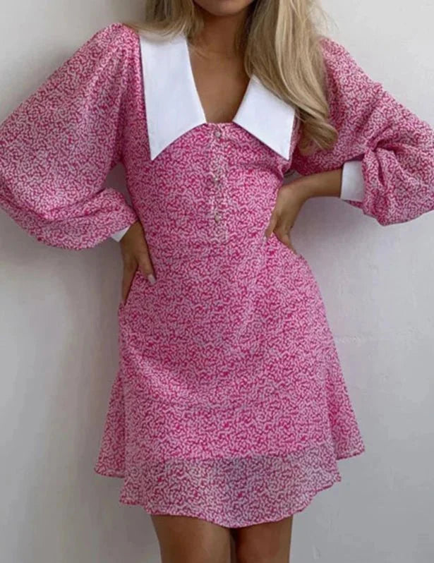 Design: Eye-catching printed mini dress with a V-neckline. backless detail. and full sleeves for a sleek high street look.