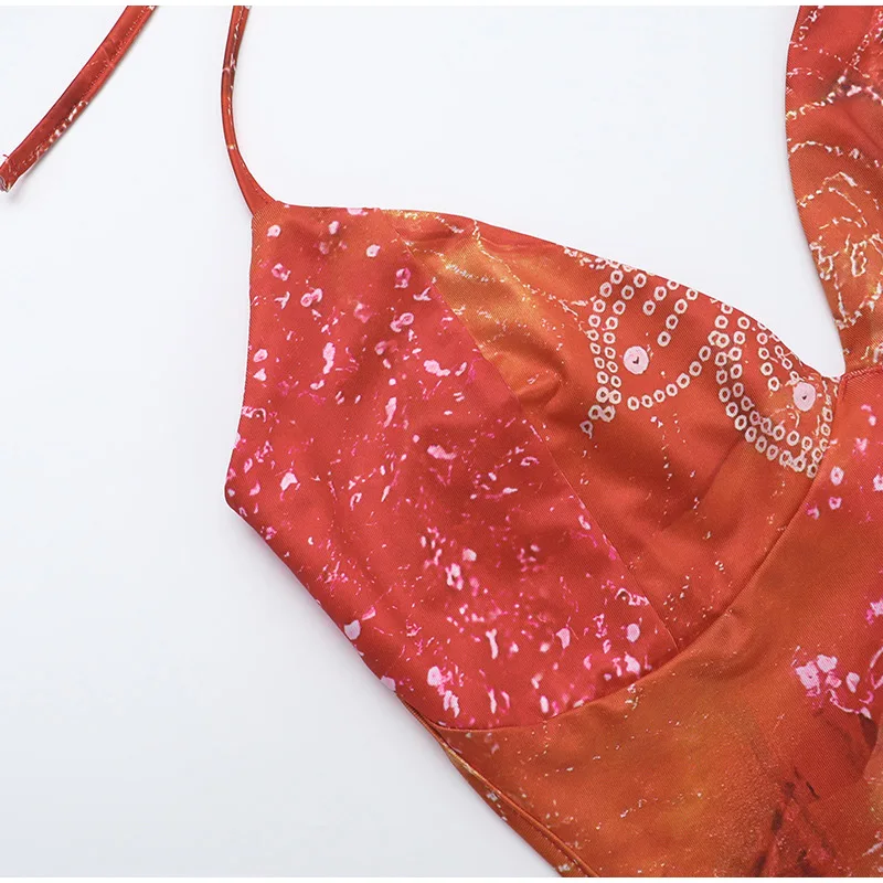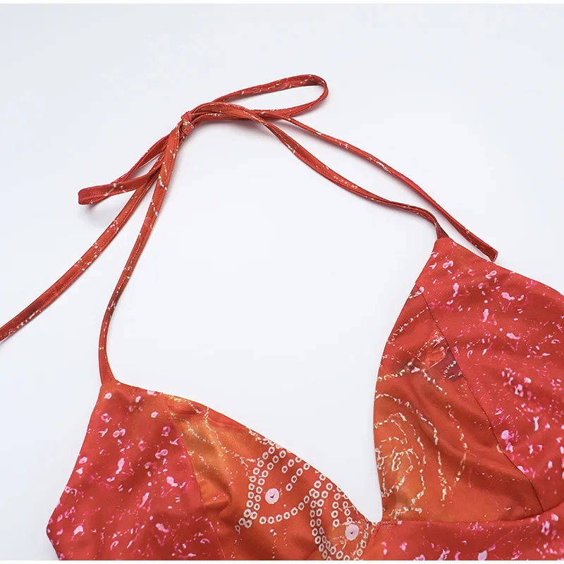 Design: Embrace effortless summer style with this vintage-inspired beach dress. featuring a bold green print and flattering cut-out details. Designed with a V-neckline. spaghetti straps. and a slim sheath silhouette that flows to ankle-length. this dress captures a free-spirited. high-street vibe perfect for sunny days and seaside escapes.