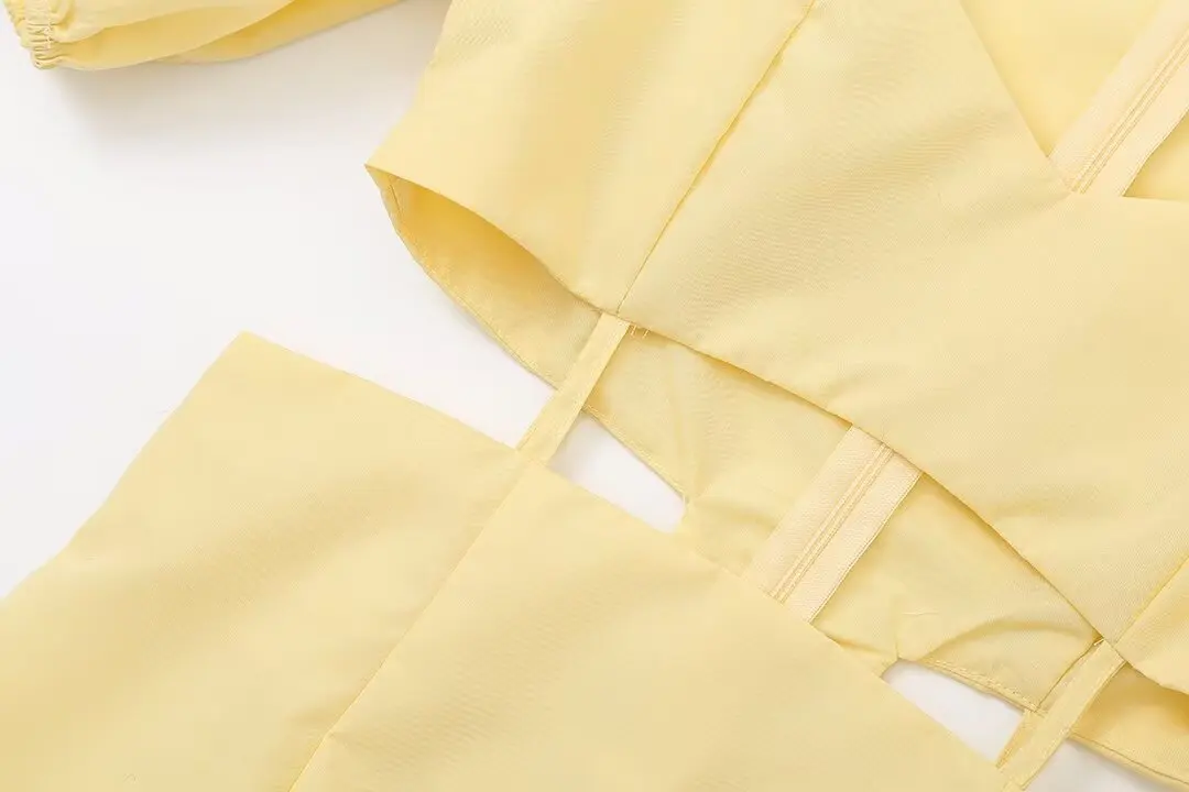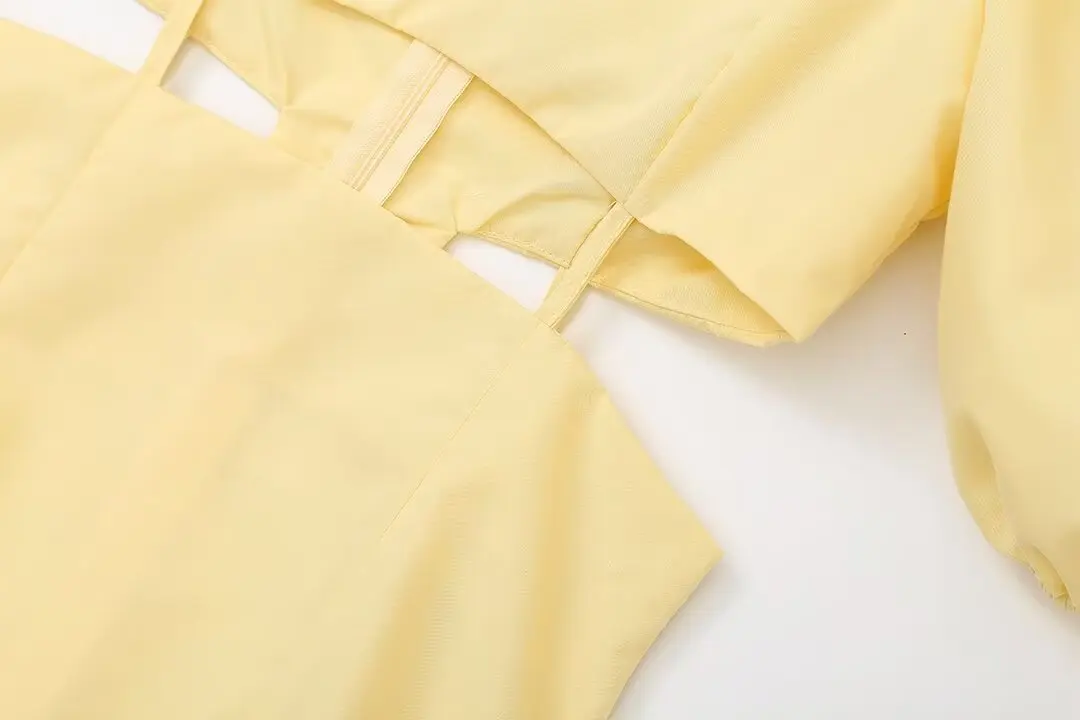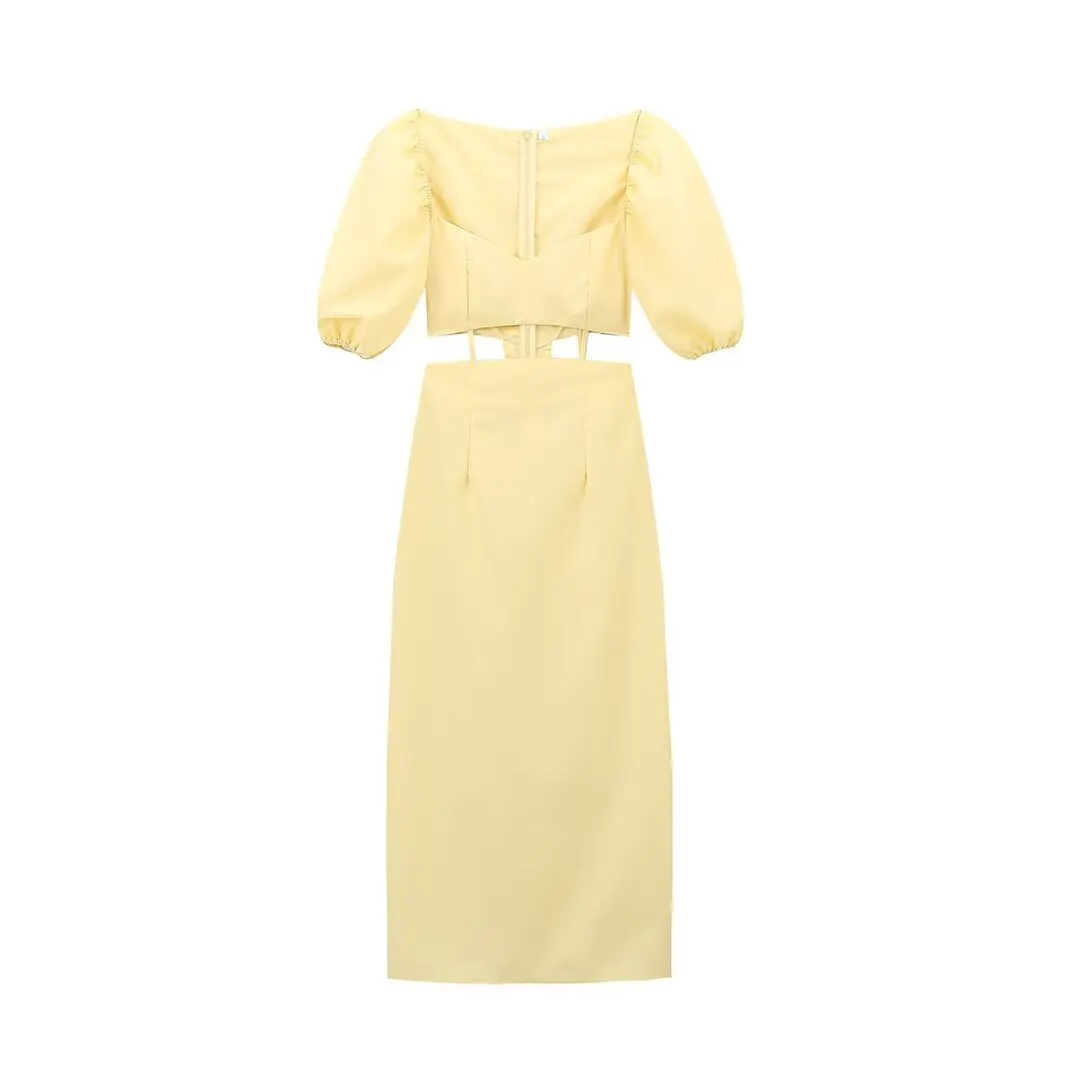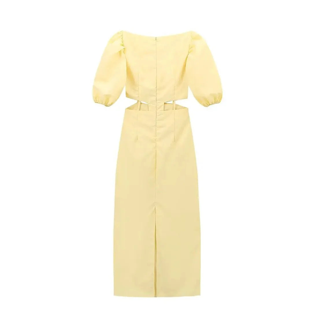 Design: A vintage ankle-length dress featuring a hollow-out waist. straight silhouette. and short regular sleeves for a chic high street look.