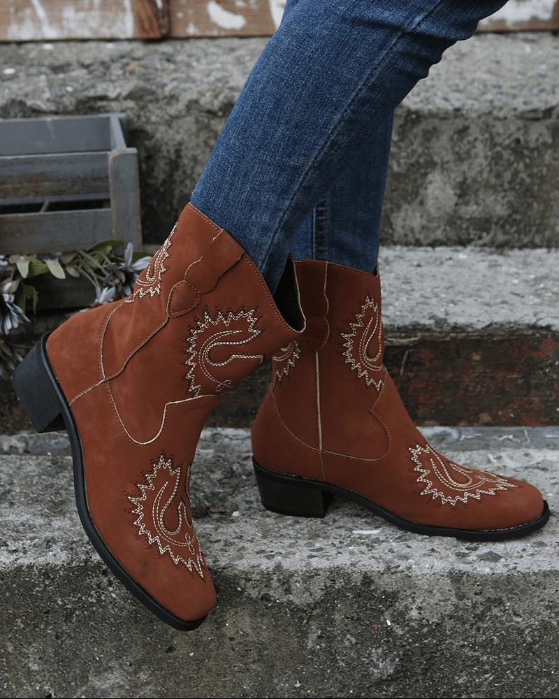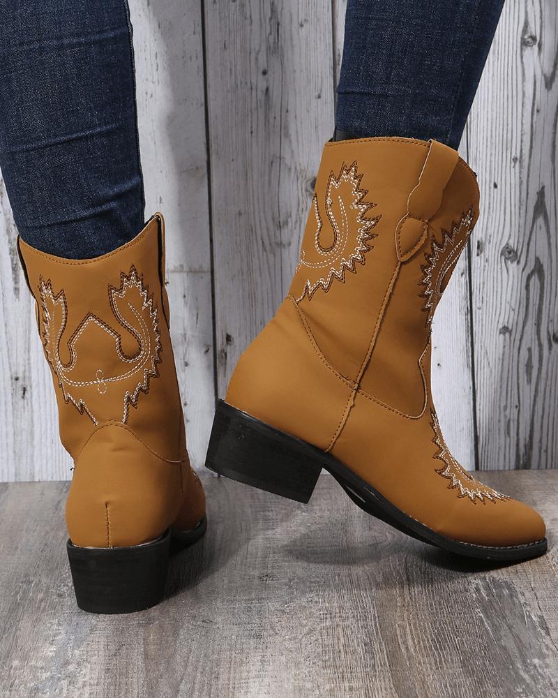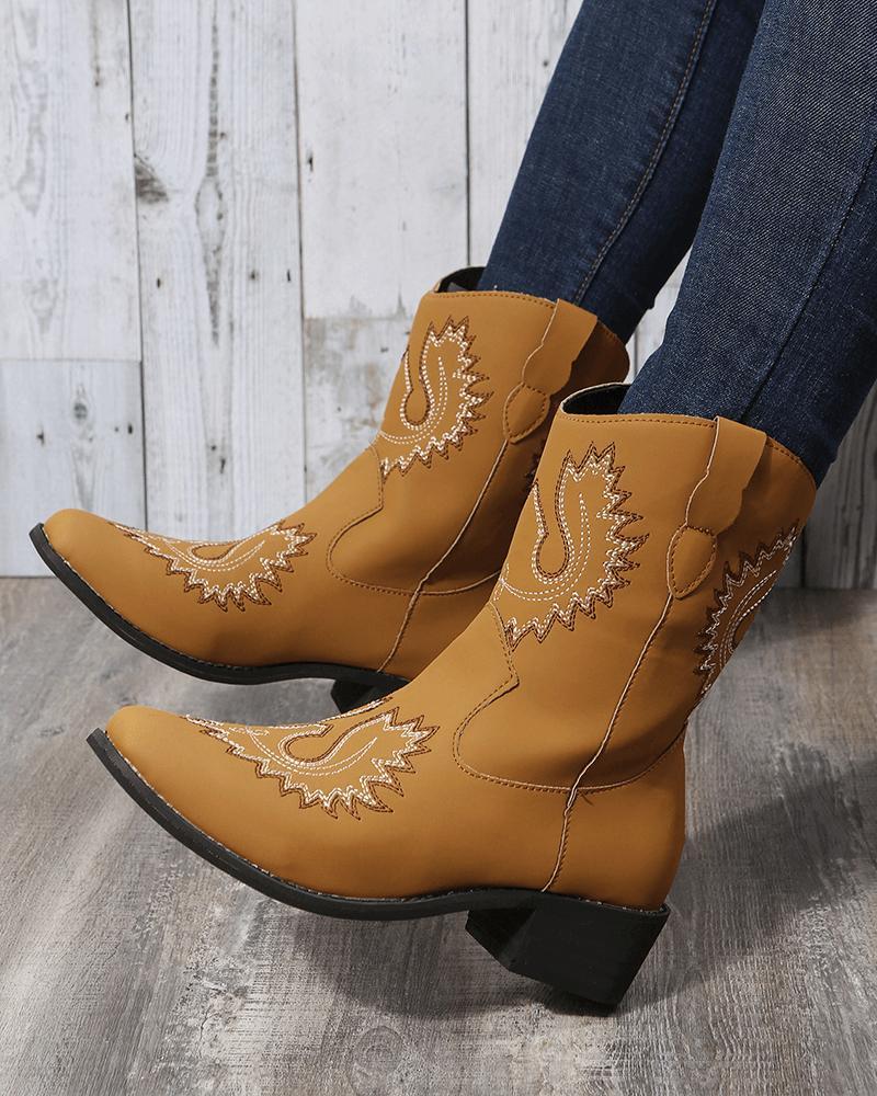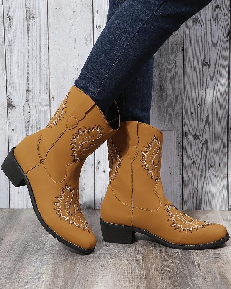 Women's Casual Daily Floral Embroidery Slip On Boots